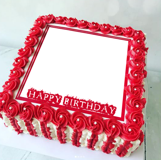 Share true love feelings along with this creative birthday cake with photo of your lover. They will love it. Express your thoughts in a great way. You can add a photo to this red square birthday cake and download it.
