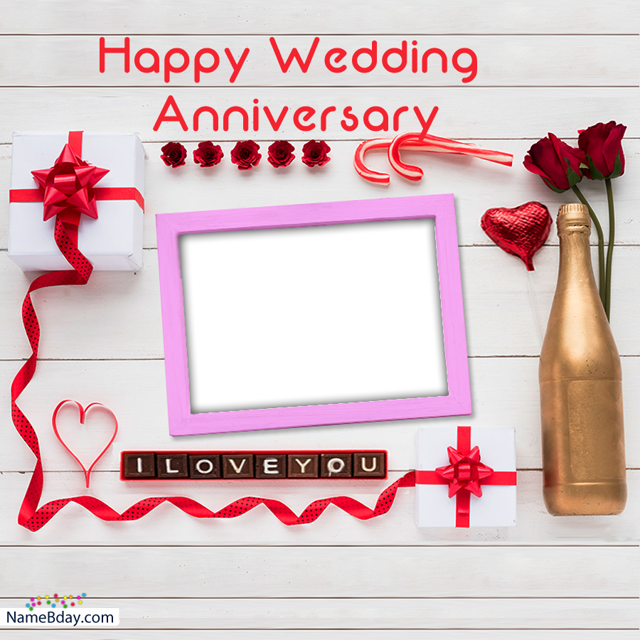 Make a beautiful and romantic happy anniversary photo frame by editing your couple's photo. Download it and update your Whatsapp status and Facebook story.